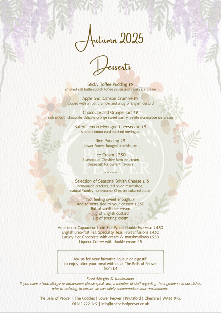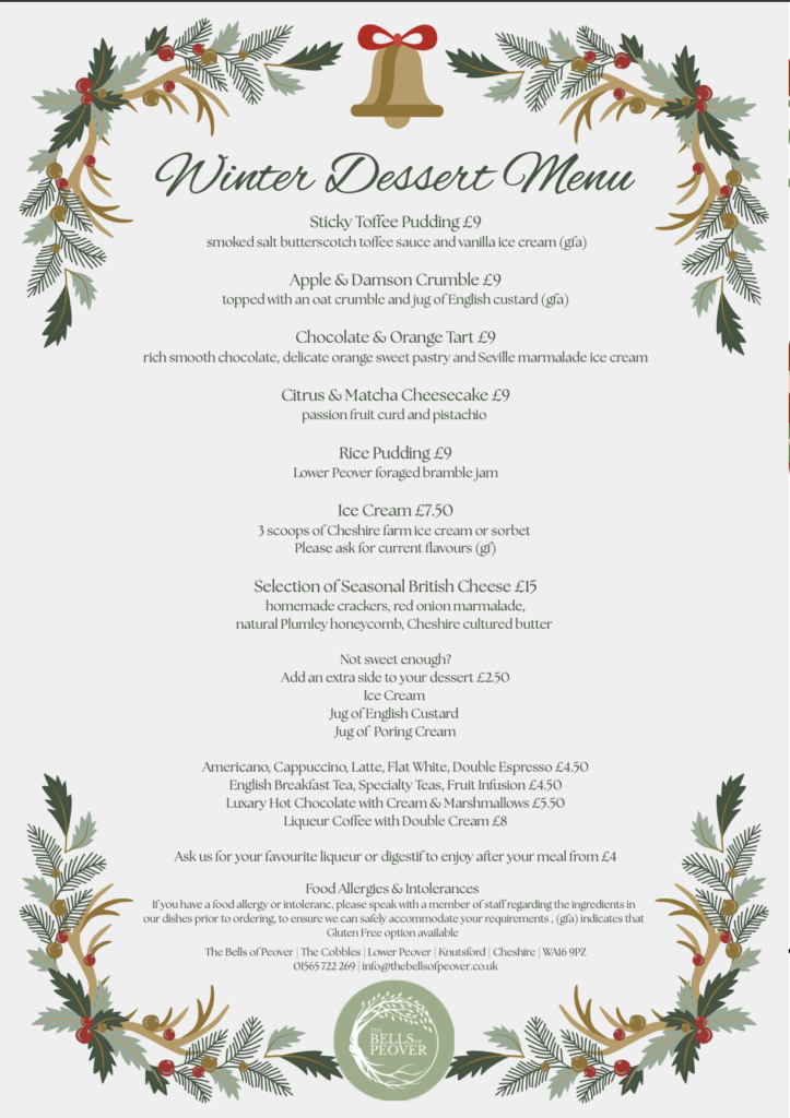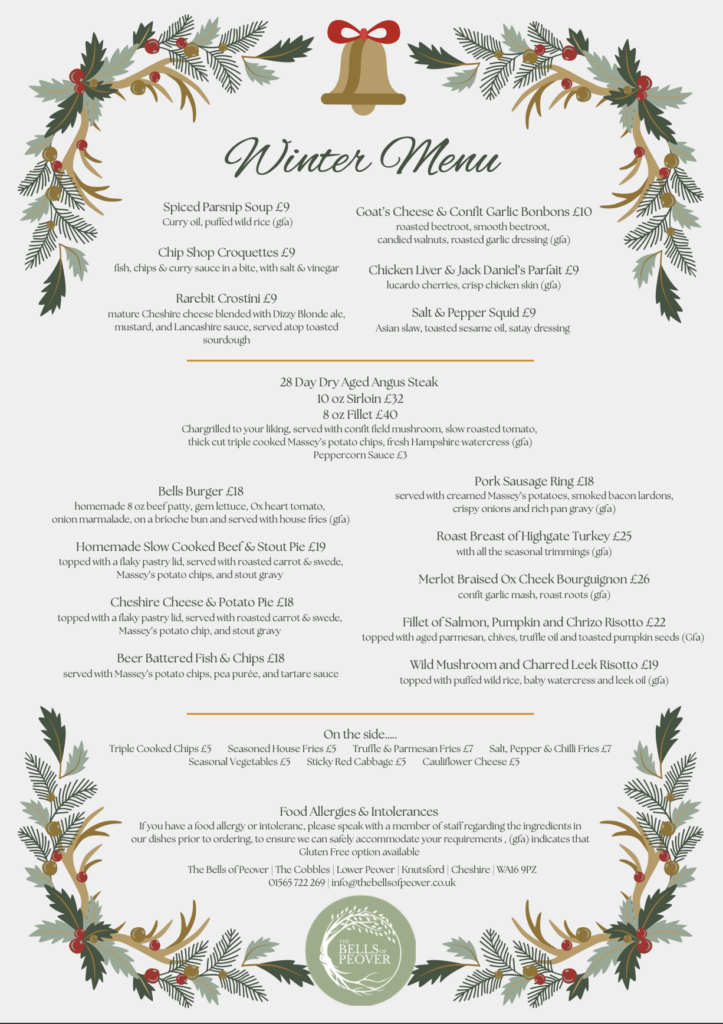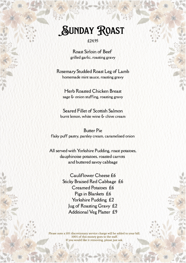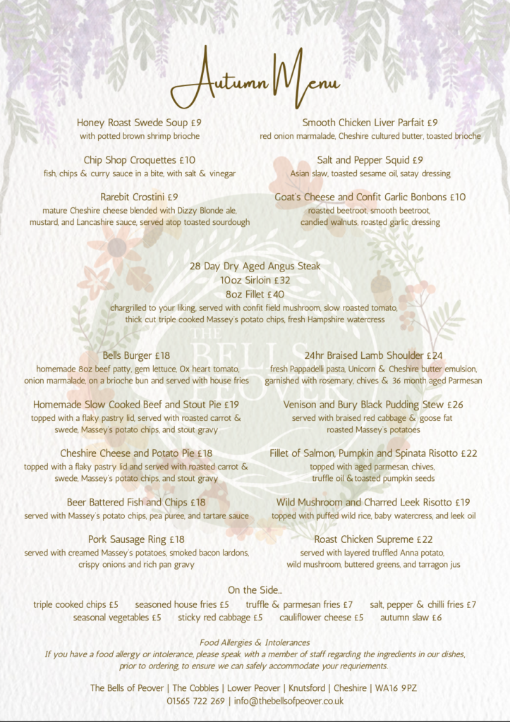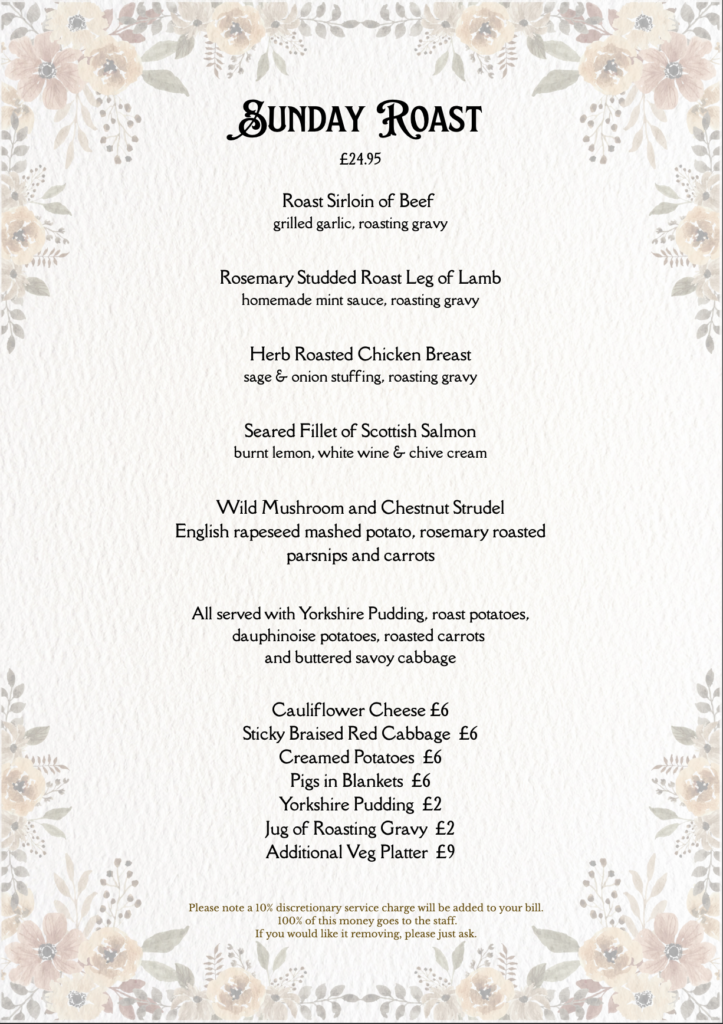 Craig has been busy behind the scenes creating our new Autumn menu, below. Also below, is our new Sunday Roast menu available exclusively on Sundays and our Festive menu that will be running from November 17th until and including December 24th excluding Sundays. Our team will also create weekly specials which can be found on our specials board & social media pages. You will also be told these specials when you are seated….. Enjoy!